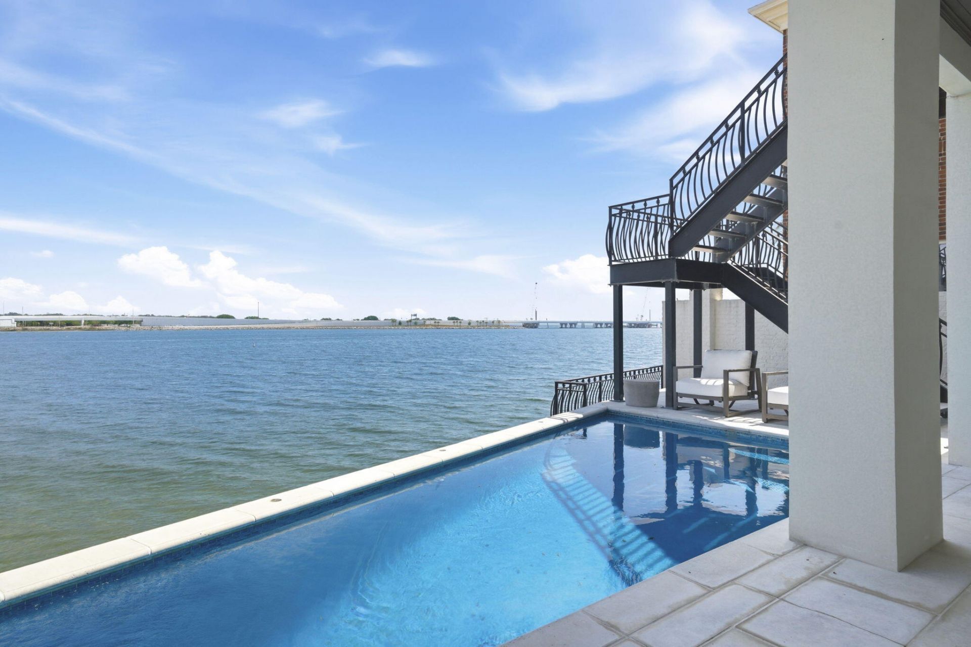 Anchoring the Downtown Pensacola bayfront, this 2018-built waterfront home is in like new condition and one of the few that truly delivers on both design and fortified construction. With approximately 8,000 square feet under roof (5,200+ heated and cooled, 1,400 of conditioned 4 car garage space, approximately 1500 sq. ft of covered and finished exterior decks). What sets it apart is what you don't always see. Concrete and 2x8 construction, a 50-year concrete tile roof by Boral, and built to full high-velocity wind zone standards. Up to 10 ft tall HVWZ 'High Velocity Wind Zone' doors and windows from Kolbe & Kolbe which are engineered for up to 200 mph wind zone.
