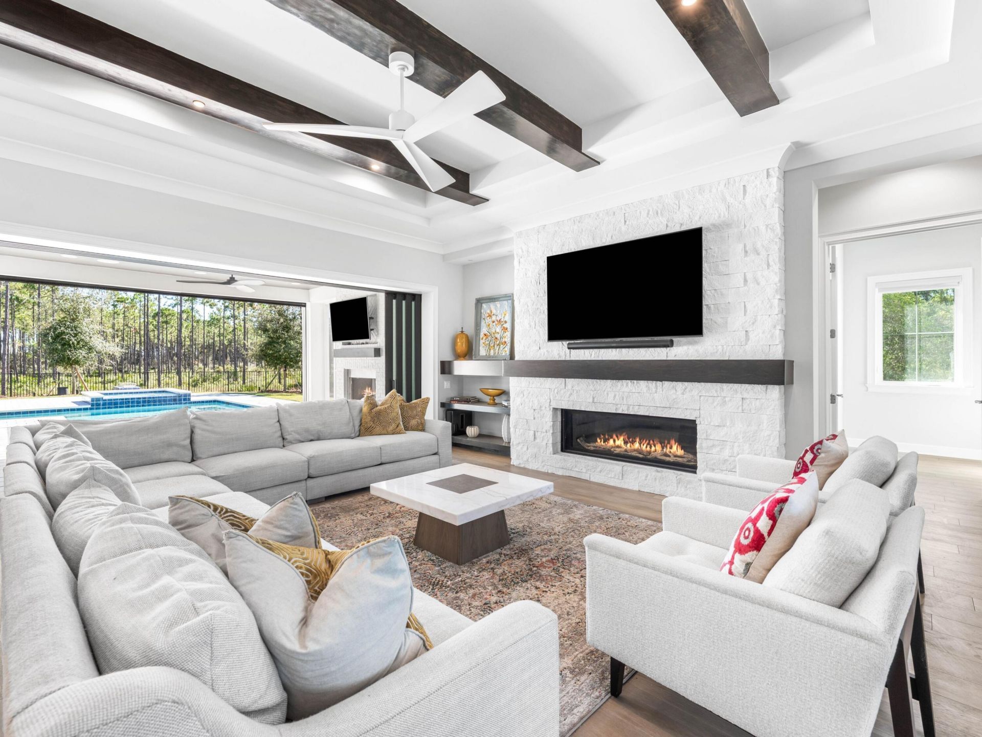 Elegance radiates from every corner of this spectacular property positioned on an almost half-acre homesite in the premier coastal community of Watersound Camp Creek. The residence encompasses 5,501 square feet with 5 bedrooms, 6 full baths plus heated swimming pool and spa and incredible outdoor living area.From the moment you enter the grand foyer, notice meticulous attention to detail and designer lighting throughout. The first floor offers an open-concept kitchen, and dining area with hardwood floors, custom built-ins, and a stunning linear fireplace as the focal point of the main living space. The exquisitely appointed kitchen features a large center island, commercial-grade stainless steel appliances with a six-burner range and skillet, and custom cabinetry. NanaWall sliding doors open directly to the outdoor kitchen, making the line between inside and out seamless. A hidden scullery offers a second refrigerator, dishwasher, sink, and ample pantry storage. A 200+ bottle wine room and a dedicated wine cooler in the dining area round out an entertainer's dream. An integrated Sonos sound system runs throughout the home.The outdoor living area features retractable motorized screens, a summer kitchen, fireplace, and generous seating -- all opening to the heated pool, spa, and enormous backyard that fronts a dedicated wooded area.The first level also includes a full bath, laundry and sand room with built-in storage, and a guest bedroom with ensuite. The primary suite features a tray ceiling, a luxurious ensuite with raised ceilings, opulent tile accents, soaking tub, large shower, an expansive walk-in closet, and a dedicated safe room. Upstairs, the secondary living area with wet bar is expansive enough for a game room, home theater or golf simulator. Three additional ensuite bedrooms complete the second level.Owners of Watersound Camp Creek enjoy an exclusive level of membership to The St. Joe Company's Watersound Club. This membership conveys at closing and entitles them direct access to the club amenities at Camp Creek, including resort pools, an 11,000 square foot fitness center, tennis and pickleball courts, multiple private dining venues, and a Tom Fazio-designed golf course. Additional member benefits include complimentary gulf-front chair and umbrella service at the Watersound Beach Club. Members also enjoy golf at the private Shark's Tooth course at Wild Heron and The Third, the club's newest course.