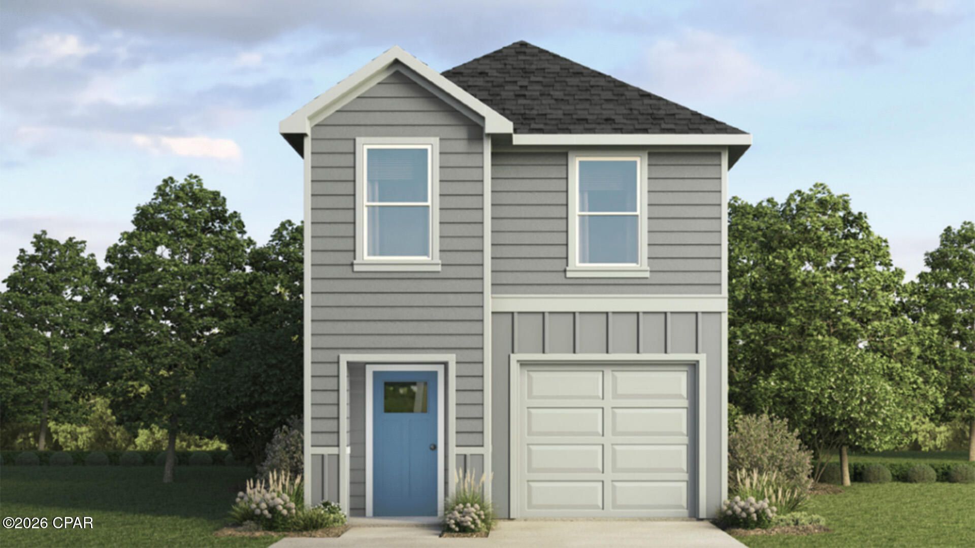 Welcome to the Canmore, a new home featured at Salt Pines in Port Saint Joe, Florida. The Canmore is a charming two-story home featuring 4 bedrooms, 2. 5 bathrooms and offering 1,578 square feet of living space with a 1-car garage. The bottom floor features 9-foot ceilings and the upper level has 8-foot ceilings. This cozy home is perfect for the comfortable vibes that Port Saint Joe is known for. A front porch (per plan) welcomes you into the home and opens to the kitchen which includes granite counter tops, quality cabinets, stainless steel appliances and an open concept floorplan with the kitchen flowing seamlessly into the dining room and living room. The bottom level also features a half-bathroom and pantry next to the kitchen and stairs. Upstairs, the primary bedroom has an attractive ensuite bathroom that features a granite vanity countertop and quality cabinetry. Enjoy additional storage with a spacious walk-in closet located off the primary bathroom. Your secondary bedrooms all feature quality carpet flooring and a closet, and can be used as a bedroom, office, work out space or other bonus room. The possibilities are endless with the Canmore floor plan. Additional features include EVP flooring in entry, living room, and all wet areas with soft carpet in the bedrooms. There are granite counter tops in all bathrooms and kitchen as well as a Smart Home Technology package allowing one central hub that talks to all the devices in your home. You can control the lights, thermostat and locks, all from your cellular device. On the Exterior you will see quality vinyl siding, a covered front porch, and a patio in the back yard to enjoy the beautiful Florida weather. After a day of enjoying all that Port Saint Joe has to offer, enjoy a quiet neighborhood with friends and family in this cozy home. To learn more about the Canmore plan and about Salt Pines, get connected with us today by requesting more information, or stop by the community in person. We look forward to telling you more about these lovely homes.